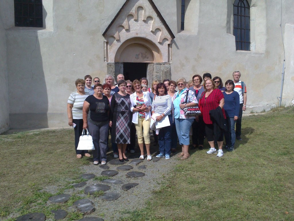 Dobre posilnení slovom i pokrmom sme sa vydali na cestu do Svinice. Pod klenbou stromov sme vystúpili po mnohých schodoch na vŕšok, kde nás v kostole, ktorého pôvod sa datuje do 12.storočia, privítal pán farár Mgr.Pavol Jašo. Pôsobivo nás oboznámil s genézou tohto románsko-gotického chrámu s nádhernými nástennými maľbami. V 14.storočí prebehla 1. prestavba s vysokou vežou. V 15. storočí bola zbúraná polkruhová apsida a dostavalo sa päťboké presbitérium. V 16.storočí bola veža dostavaná do výšky 5. poschodia. Na južnej strane bola dostavaná sakristia, ktorá sa však nezachovala. Výnimočnú hodnotu majú zachované a reštaurované gotické fresky situované na východnej stene interiéru. Benátska škola fresiek bola zaradená do 14.storočia.Odkryté boli až v roku 1913. Zobrazuje Posledný súd s tlamou príšery, do ktorej boli zaháňaní hriešnici. Nájdeme však aj nebeský Jeruzalem, kde v náručí starozákonných patriarchov-Abraháma, Izáka a Jákoba spočívali cnostní kresťania. Značne spustnutý kostol sa dočkal rekonštrukcie v rokoch 1972 až 1979. O 20 rokov neskôr boli do konečnej podoby rekonštruované i pôsobivé fresky, ktoré sa odhaľovali postupne. Zachovali sa vlastne vďaka tomu, že v 16. storočí prešiel kostol do rúk reformovanej cirkvi, ktorá vnútorné steny s renesančnými freskami prekryla bielym náterom, ktorý ich ochránil do dnešných čias. Tento mohutný kostol je využívaný len príležitostne. Po prehliadke nádvoria kostola sme prešli do súčasného kalvínskeho kostola s farským úradom, posväteným v roku 1998,ktorý postačuje 80-tim veriacim dušiam vo Svinici.