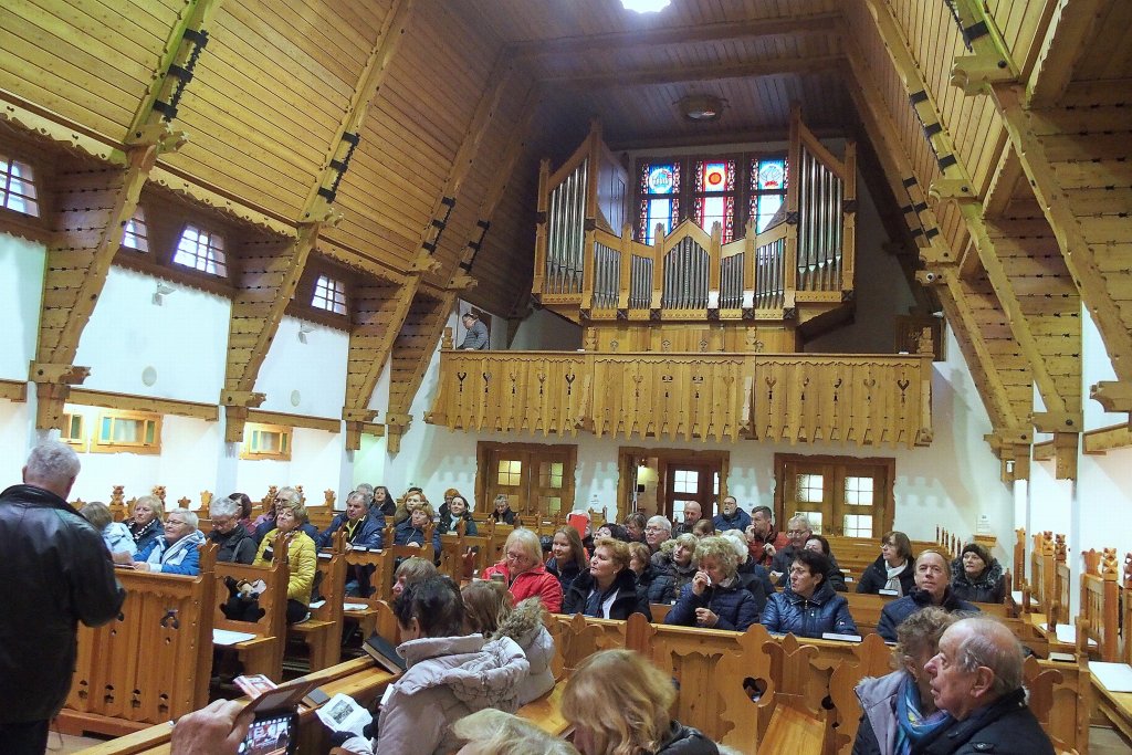 Popoludní sme navštívili Deszkatemplom – drevený kostol reformovanej cirkvi, ktorý stojí na vyvýšenom mieste nad Miškovcom. Kurátor zboru nám priblížil históriu a zaujímavosti o kostole. Tento kostol slúži predovšetkým na konanie pohrebných bohoslužieb, nakoľko sa okolo kostola nachádza veľký cintorín. V každom chráme sme skúšali akustiku priestoru spevom rôznych piesní – spevníkových i nespevníkových, židovských i nežidovských za gitarového doprovodu brata farára Szélesa. Začalo sa stmievať a našou poslednou zastávkou boli 12 km vzdialené kúpele Lillafüred. Bohužiaľ sme ich krásu mohli obdivovať iba v prítmí. Vďaka patrí Pánu Bohu, že nás chránil na ceste tam i späť a že sme mohli nahliadnuť do maďarských kostolov, spoznať ich históriu i súčasnosť a porovnať si ich so slovenskými kostolmi a životom v nich. Veľká vďaka tiež patrí našim maďarským sprievodcom i organizátorom spomenutým v úvode článku.