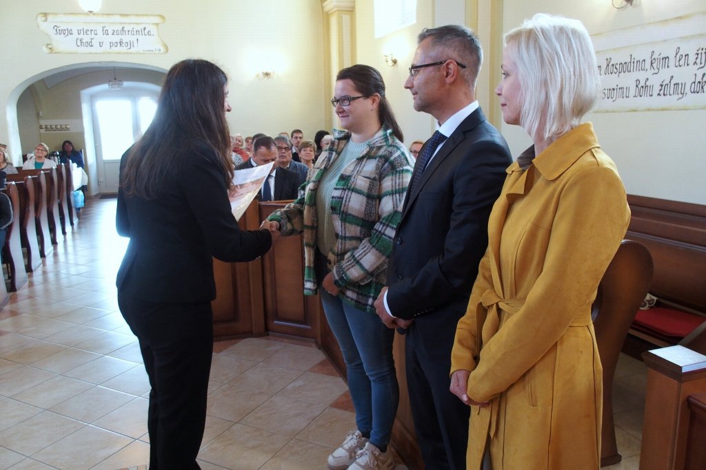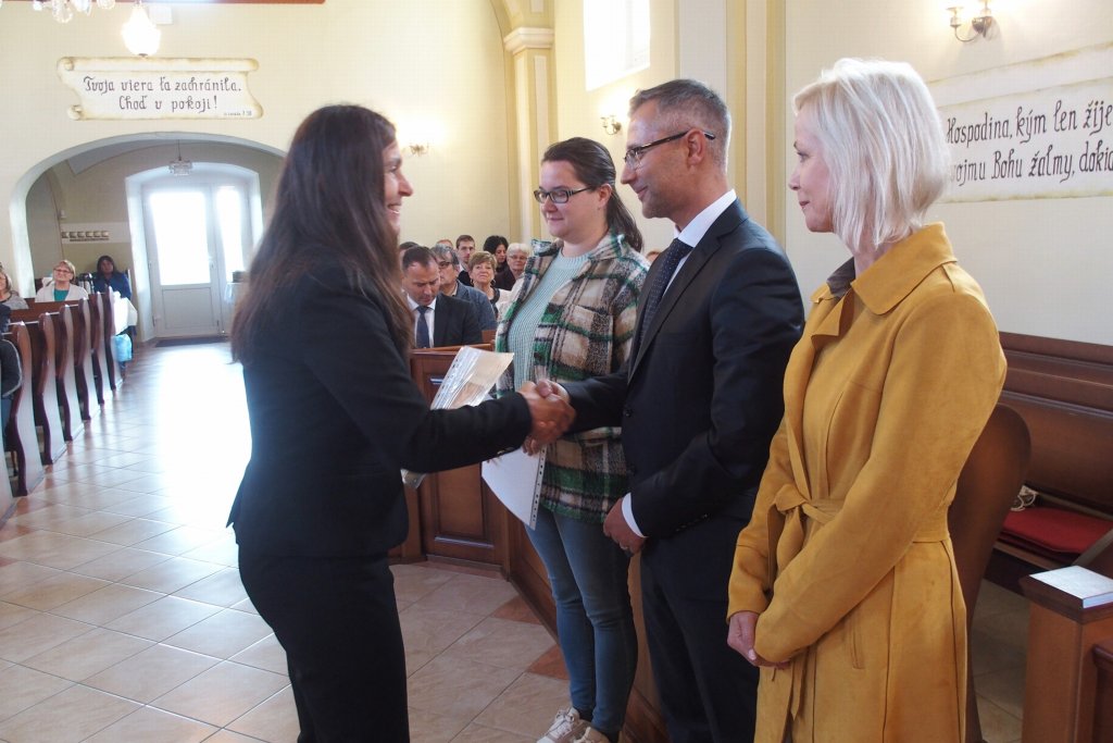 Nasledoval príhovor p. seniora Brecka k absolventom kurzu Vzdelávanie pre pracovníkov so staršími (Oľga Jánošíková, Dušan Kavka, Jana Križanovičová, Ján Rásky a Gejza Seleš). Poslednou skupinou, ku ktorej sa prihovorila p. farárka Sláviková, boli absolventi kurzu Vzdelávanie katechétov (Ľubica Halásová, Ivana Níska, Helena Sterczová, Karol Stercz).